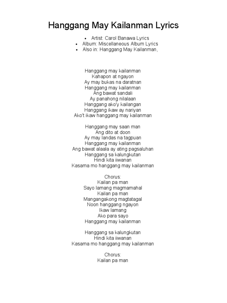 1 Kailan Kaya Lyrics Ahhhh. Kahit anong aking gawin di mo pinapansin. Pagdampi ng iyong labi.